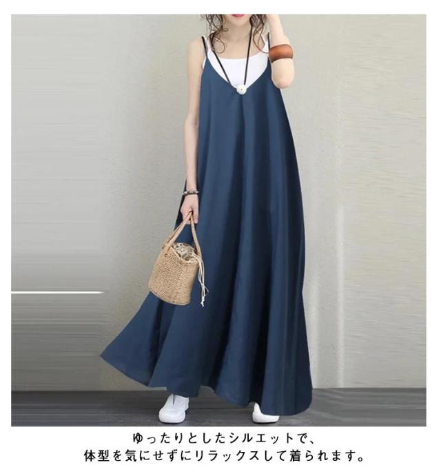 キャミワンピース ロングワンピ マキシ丈 マキシワンピ キャミワンピ キャミソールワンピース Vネック きれいめ オフィス 仕事 ゆったり 体型カバー マタニティ ママ ワンピース レディース 送料無料