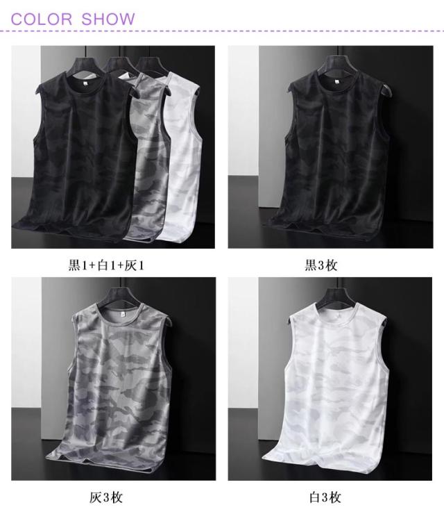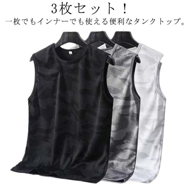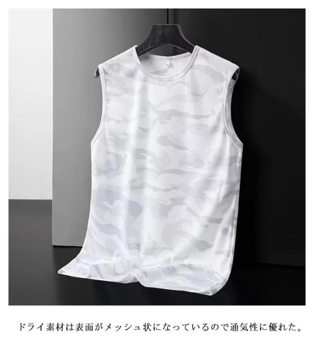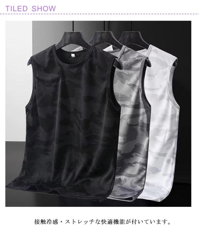 3枚セット タンクトップ メンズ ノースリーブ トップス ドライ メッシュ 接触冷感 ストレッチ 吸汗 速乾 インナー 男性 メッシュtシャツ 迷彩柄 伸縮性 ランニングシャツ ストリート ジム トレーニングウェア スポーツ カジュアル 大きいサイズ 春服 春 夏服 送料無料