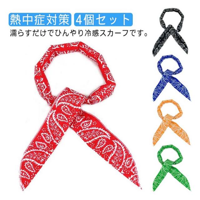 【4個セット】 冷感スカーフ クールスカーフ ひえひえスカーフ ひんやり 熱中症対策 暑さ対策 水に濡らすだけ ネッククーラー 冷却スカーフ 熱中症対策 猛暑対策 首巻き タオル 冷却ジェル入り 釣り 屋外作業 スポーツ レジャー アウトドア キャンプ 送料無料