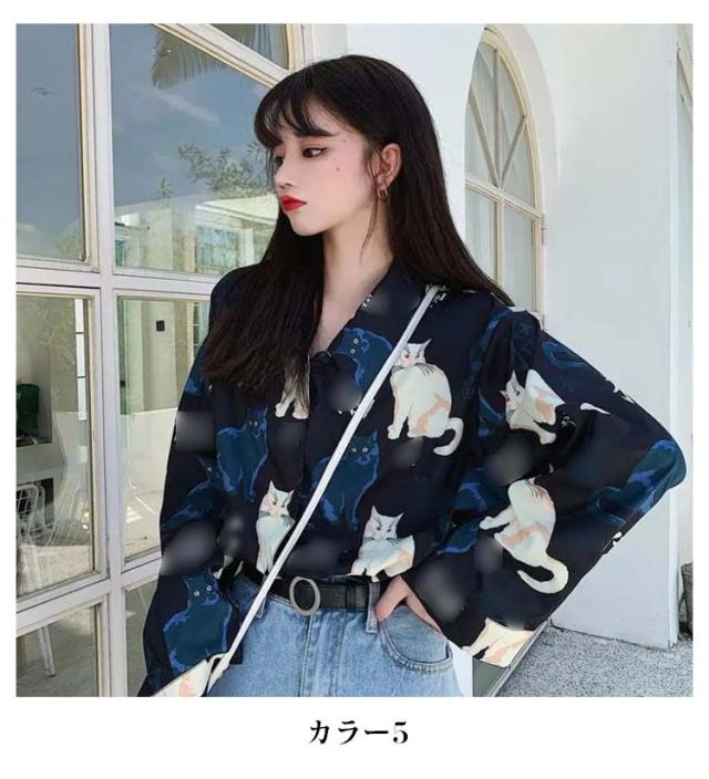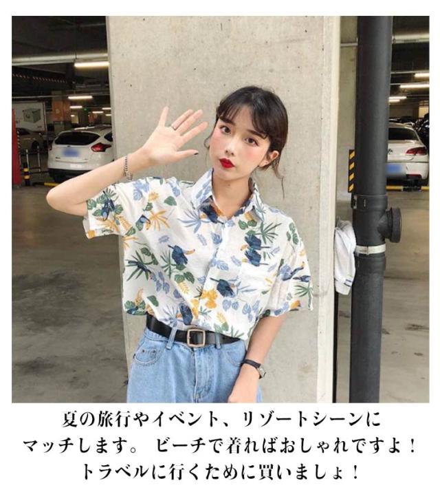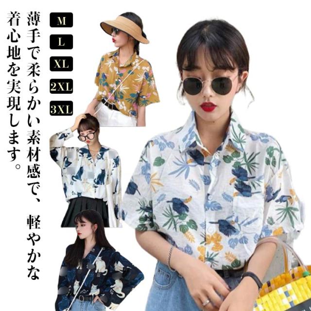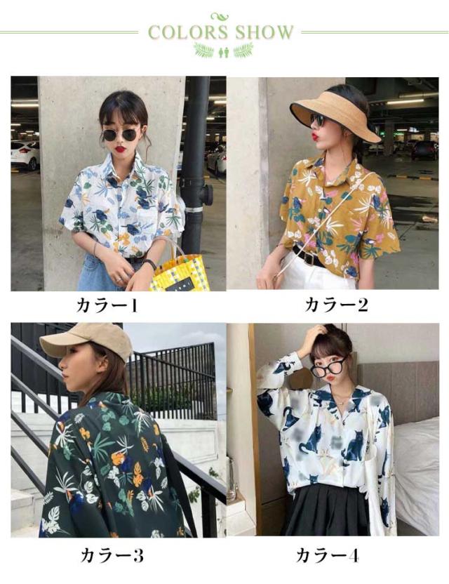 アロハシャツ レディース トップス 夏 シャツ トップス 開襟 ハワイシャツ ダンス 衣装 ヒップホップ コスチューム 半袖 ハワイシャツ ボタニカル ねこ柄 アロハ 日焼け止め服 薄手 ゆったり ビーチ リゾート 開襟 浜辺 個性的 服 原宿系 送料無料