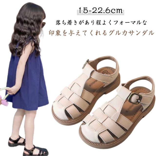 キッズサンダル つま先あり マジックテープ サンダル キッズ 女の子 男の子 フラットサンダル ストラップサンダル ストラップ グルカ 履きやすい 滑り止め グルカサンダル 編み込みサンダル ぺたんこ 可愛い カジュアル 送料無料