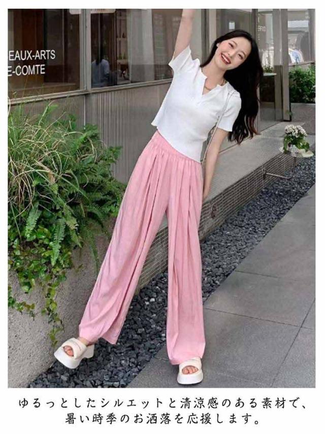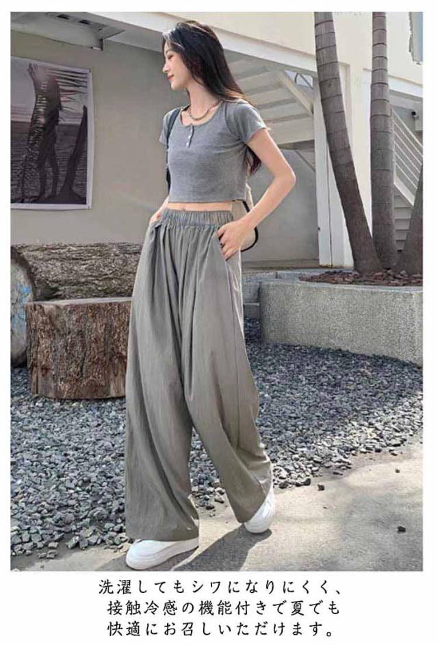 夏にぴったり 冷感 ワイドパンツ レディース 接触冷感 美脚 ストレッチ ワイドパンツ イージーパンツ 薄手 ゆったり 夏 ひんやり レディース ボトムス パンツ 涼しい パンツ ナチュラル ウエストゴム ルームウェア 楽ちん ボトムス