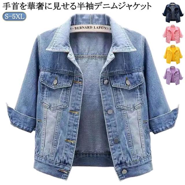 デニムジャケット レディース Gジャン ショート丈 半袖デニムジャケット デニム ライトアウター デニムポレロ 羽織り 半袖 五分袖 ジージャン 春 夏 秋 シンプル おしゃれ カジュアル 通学 普段着 お出かけ 旅行 20代 30代 40代 50代