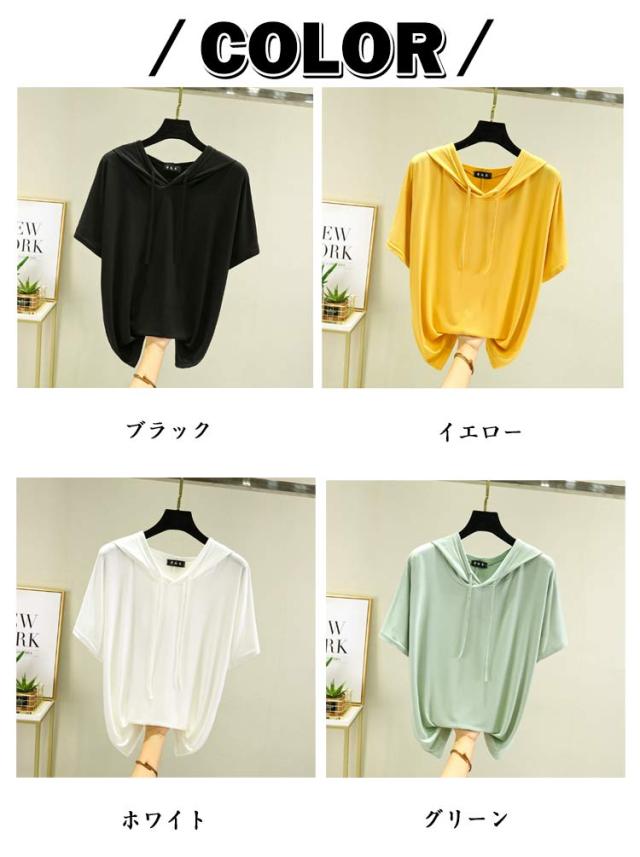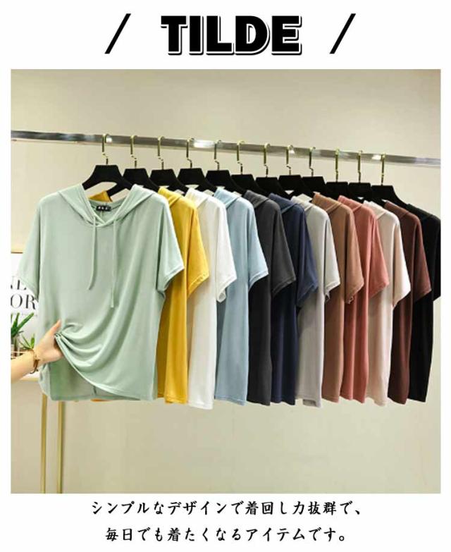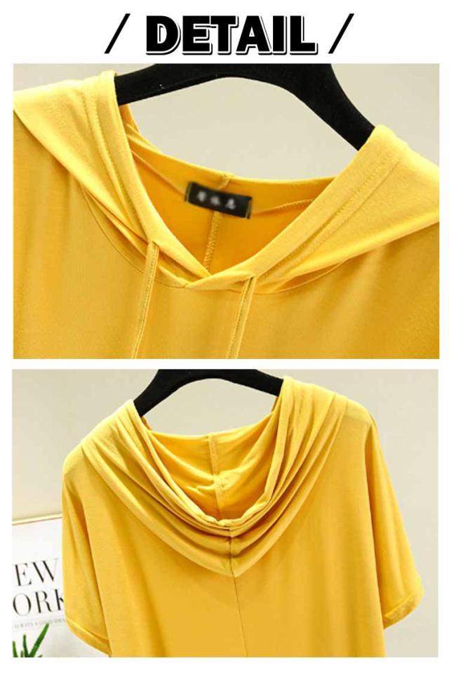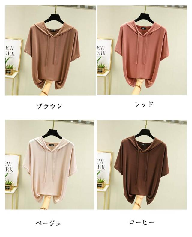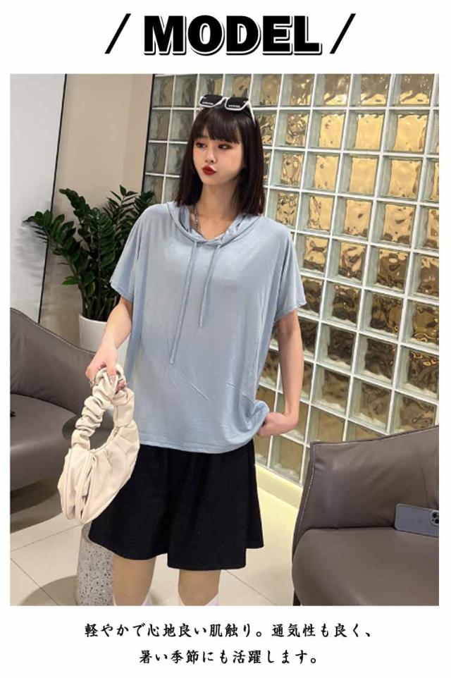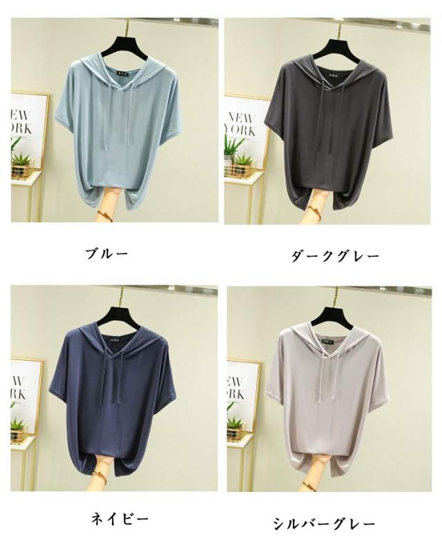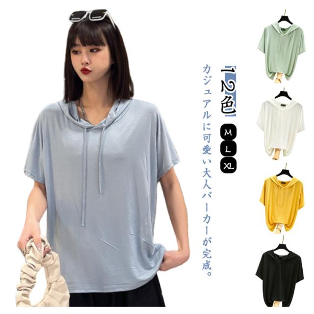 フード付きtシャツ 半袖 パーカー 半袖パーカー 春夏 カットソー プルオーバー フーディー 5分袖 無地 レディース ティーシャツ 体型カバー 薄手 大きいサイズ シンプル インナー トップス 着痩せ ルームウエア 大人 カジュアル 部屋着