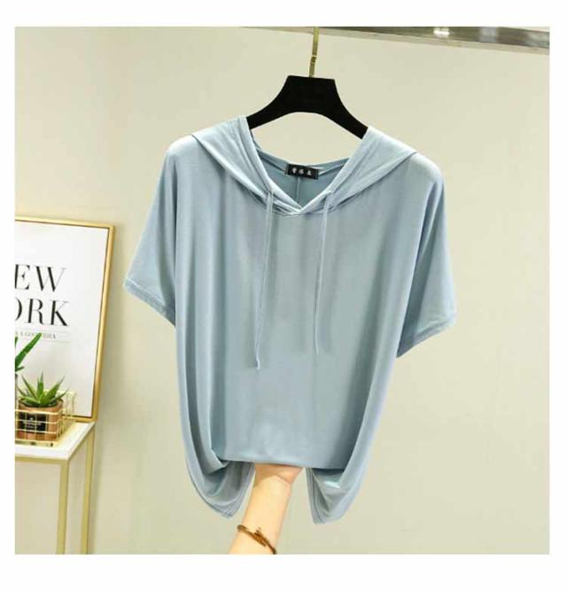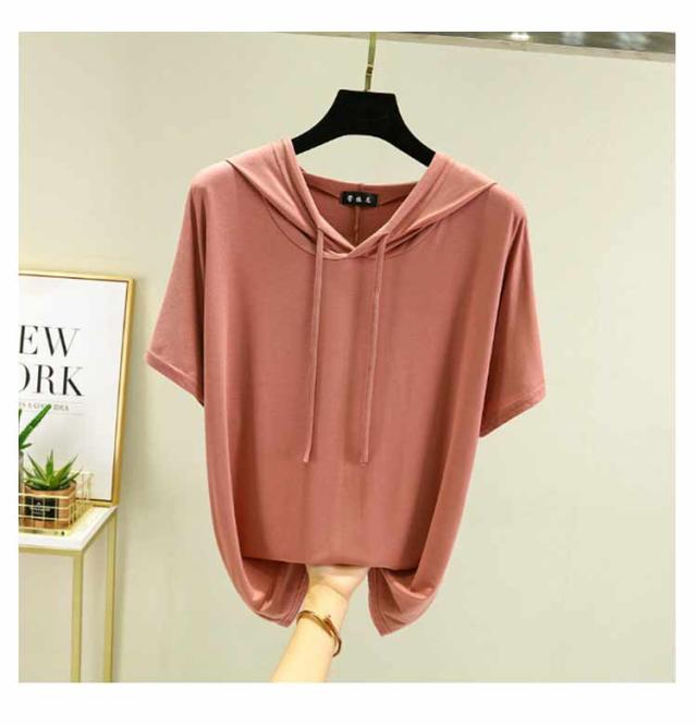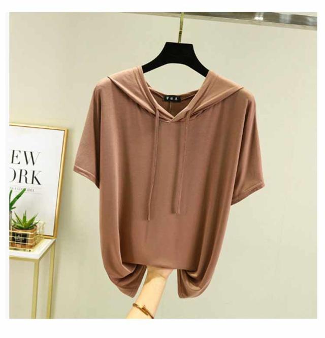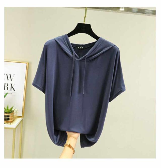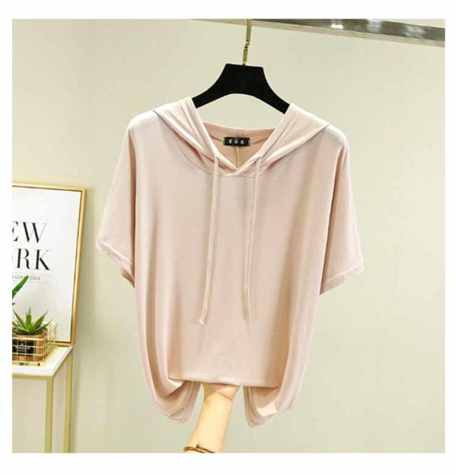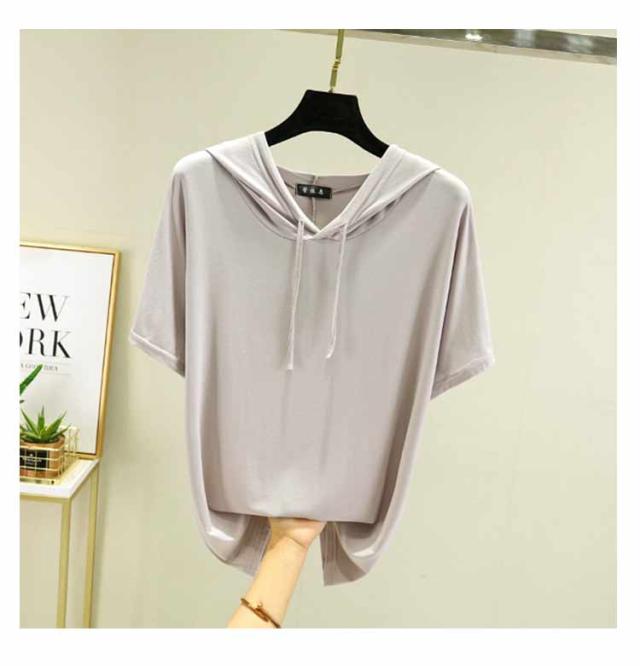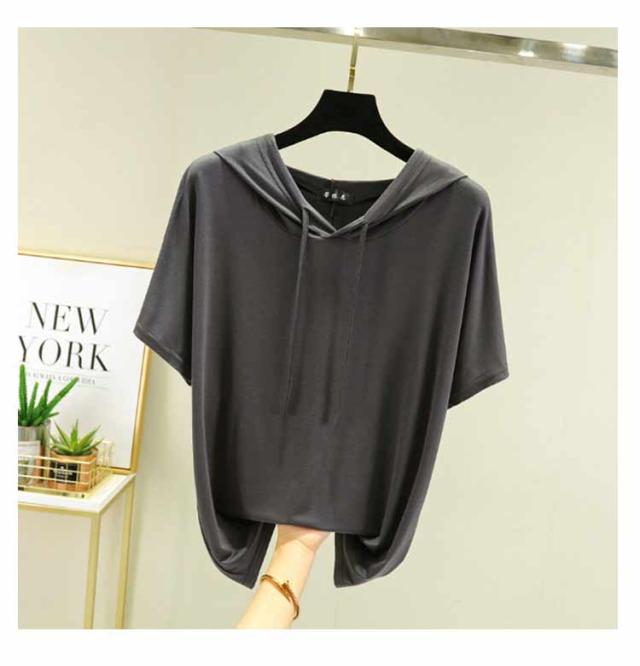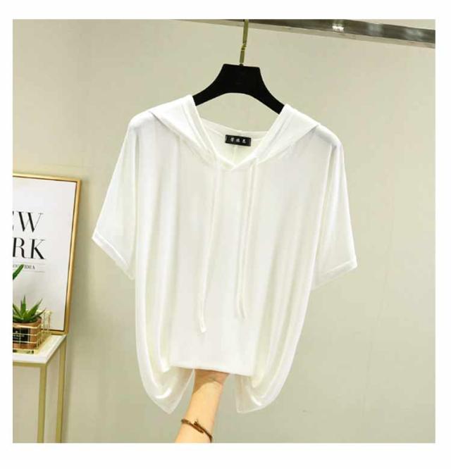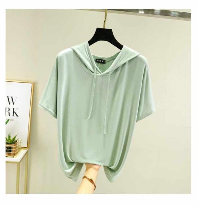 フード付きtシャツ 半袖 パーカー 半袖パーカー 春夏 カットソー プルオーバー フーディー 5分袖 無地 レディース ティーシャツ 体型カバー 薄手 大きいサイズ シンプル インナー トップス 着痩せ ルームウエア 大人 カジュアル 部屋着