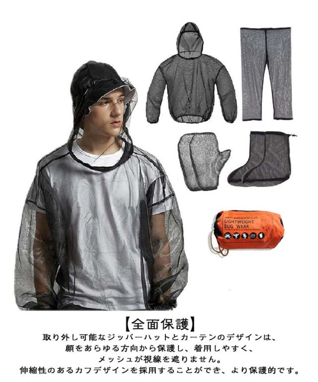 【5点セット】 虫除けウェア 虫よけウェア 虫よけネット 防虫ネット 蚊よけ メッシュ 虫除け ウェア パーカー ズボン 足カバー 手袋 収納袋 防虫 畑用 採集 釣り 軽量 耐久性 速乾性 通気性 農業作用