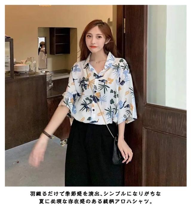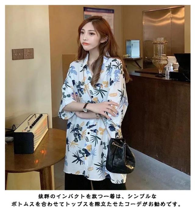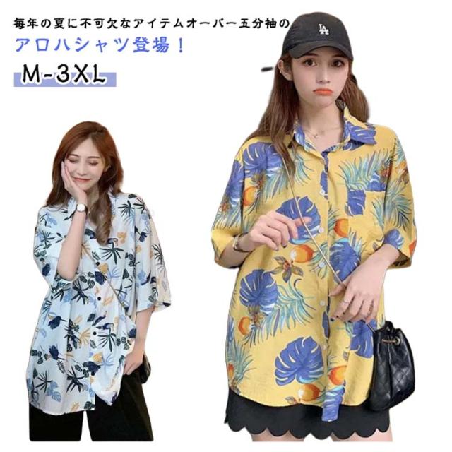 アロハシャツ 五分袖 レディース 総柄シャツ オーバーサイズ 開襟 半袖シャツ ボタニカル柄 花柄 総柄 トップス ダンス 衣装 カジュアルシャツ おしゃれ ビッグシルエット 羽織り レトロ ルーズ カジュアル ビーチ リゾート 海辺 ゆったり 大きいサイズ ギフト プレゼント
