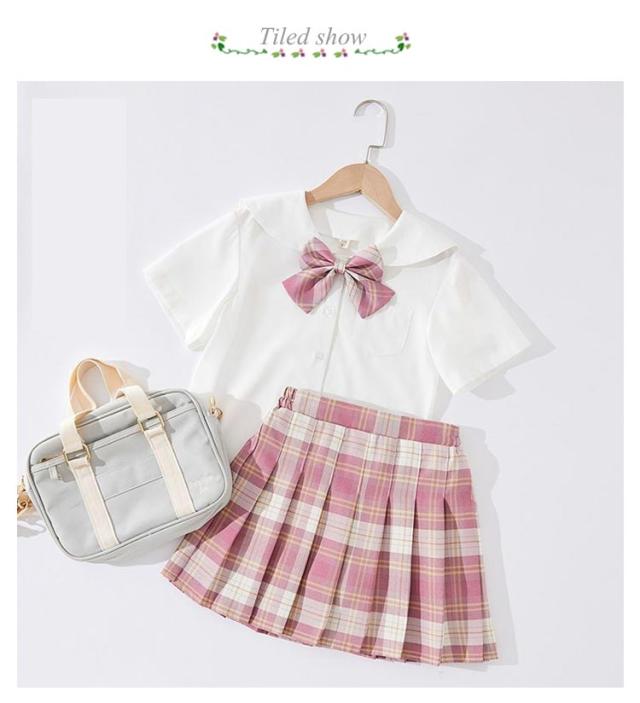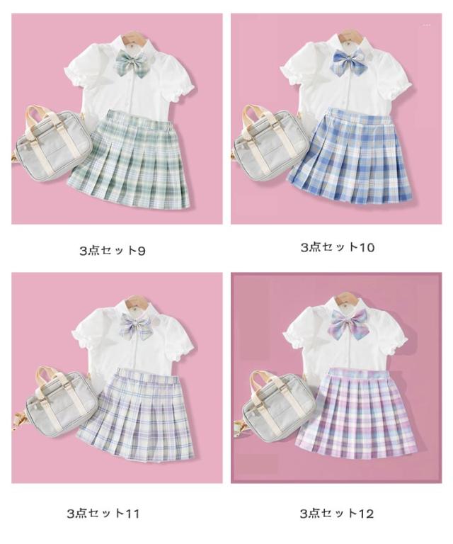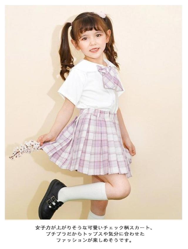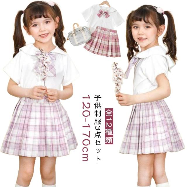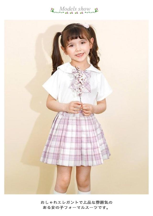 子供 制服 上下セット キッズ 女の子 トップス スカート 蝶結び リボン付き チェック柄 スクール 学生制服 プリーツスカート 子供服 フォーマルスーツ 可愛い JK制服 卒業 卒園 半袖 コスプレ 中学生 小学生 仮装