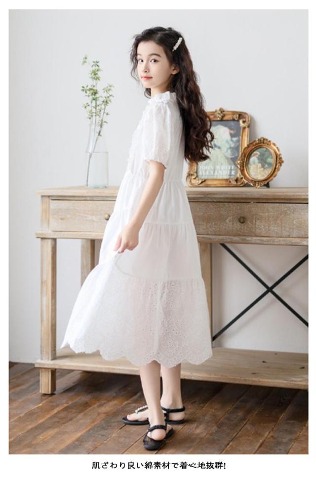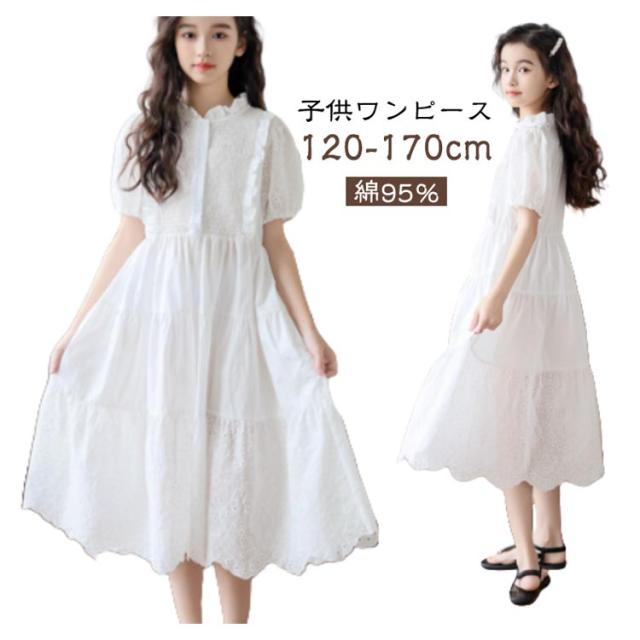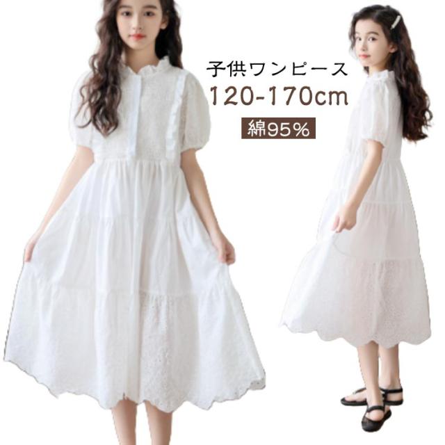 子供ワンピース 子どもワンピース キッズ ジュニア ホワイト 白 女の子 半袖 ワンピース 半袖ワンピース フォーマル キッズワンピース フォーマルワンピース かわいい 普段着 ピアノ発表会 入学式 卒業式 結婚式 誕生日