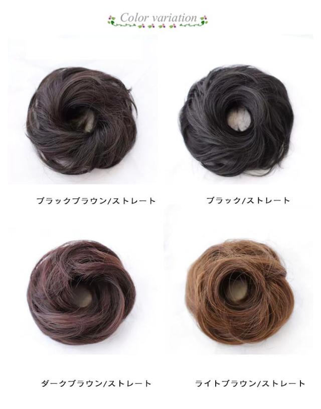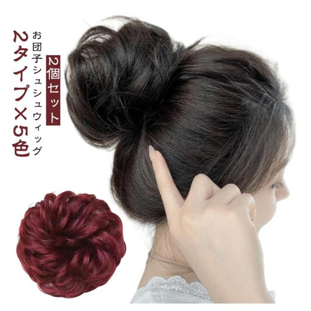 【2個セット 選べる9種類】 お団子 ウィッグ つけ毛 シニヨン シュシュ ヘアゴム カール ストレート ゴム ミニ 大きい 小さめ フラダンス 簡単 ボリュームアップ 盛り髪 ヘアアレンジ 大人 子供 レディース お団子シュシュウィッグ
