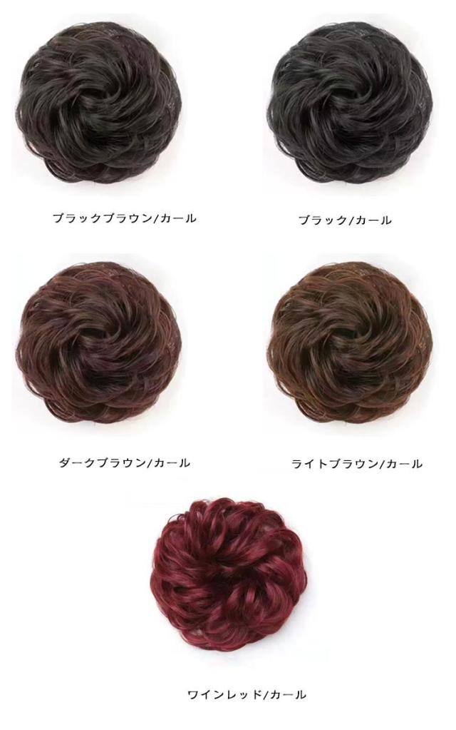 | 色 | 1個目ブラックブラウン/ストレート 1個目ブラック/ストレート 1個目ダークブラウン/ストレート 1個目ライトブラウン/ストレート 1個目ブラックブラウン/カール 1個目ブラック/カール 1個目ダークブラウン/カール 1個目ライトブラウン/カール 1個目ワインレッド/カール |