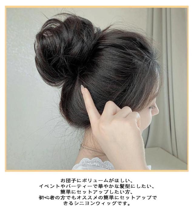 | お団子シュシュウィッグ 2タイプ×5色 【2個セット】 ●ヘアゴムのようにとても伸縮性のあるウィッグシュシュです。巻くだけ簡単にふんわりオシャレなアップスタイルに♪ 不器用さんでもパパッと装着が可能です! ●仕上げの毛流れのバランス調整次第でボリュームを出したり、コンパクトに仕上げたりと簡単にできます。工夫次第でいろいろなアレンジが楽しめるのところが嬉しい♪ ●髪質はテカリを抑えた、高品質な耐熱ファイバーを使用してるからよりリアルな質感で自然に地毛と馴染みやすいです。地毛の色と近いカラーをチョイスすることで近くで見てもわからないくらい更に自然に。 ●エクステや前髪ウィッグなど、他のポイントウィッグとの相性も抜群!カールとストレートタイプから選べるので、コーディネートやメイクに合わせて色んなアレンジを楽しめます! ●お団子にボリュームがほしい、イベントやパーティーで華やかな髪型にしたい、簡単にセットアップしたい方、初心者の方でもオススメの簡単にセットアップできるシニヨンウィッグです。 使い方法: 1、まず自毛を一つにもとめます。 2、まとめた地毛を土台にしシュシュウィッグを巻き付けます。(ゴムになっているので一回転または2回転まきつけます) 3、手ぐしで形を整えます。 4、華やかなアップスタイルが完成! | |