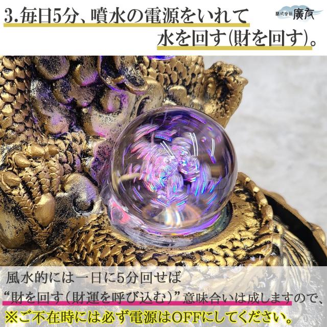 構造上、水を循環させ、龍珠が回転する仕組みの為、周りに多少水が飛び散る場合がございます。 予めご了承ください。