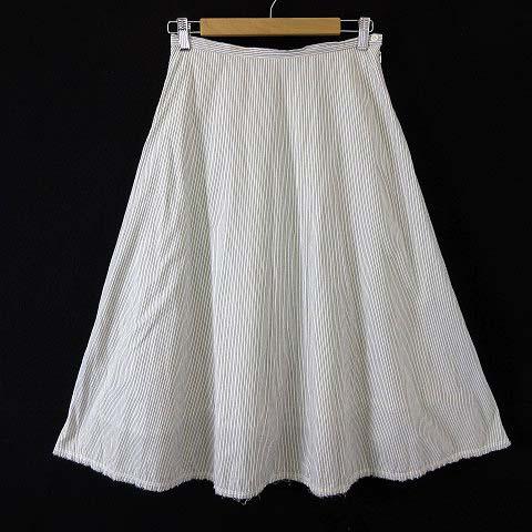 【中古】サニークラウズ Sunny Clouds スカート フレア ストライプ カットオフ ロング コットン M オフ白 黒 ブラック