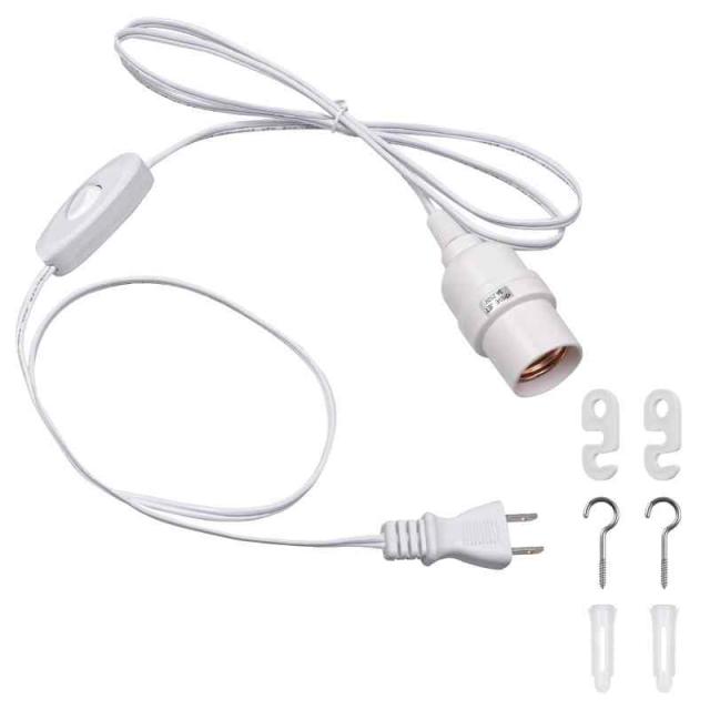DiCUNO コード付き ソケット E26 電球ソケット コンセント式 スイッチ付き 吊り下げ 2m おしゃれ (ホワイト, 1個入)