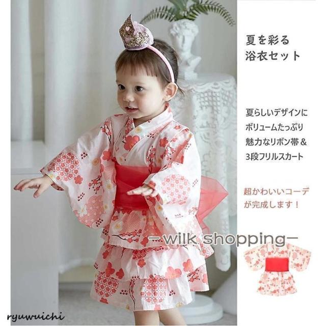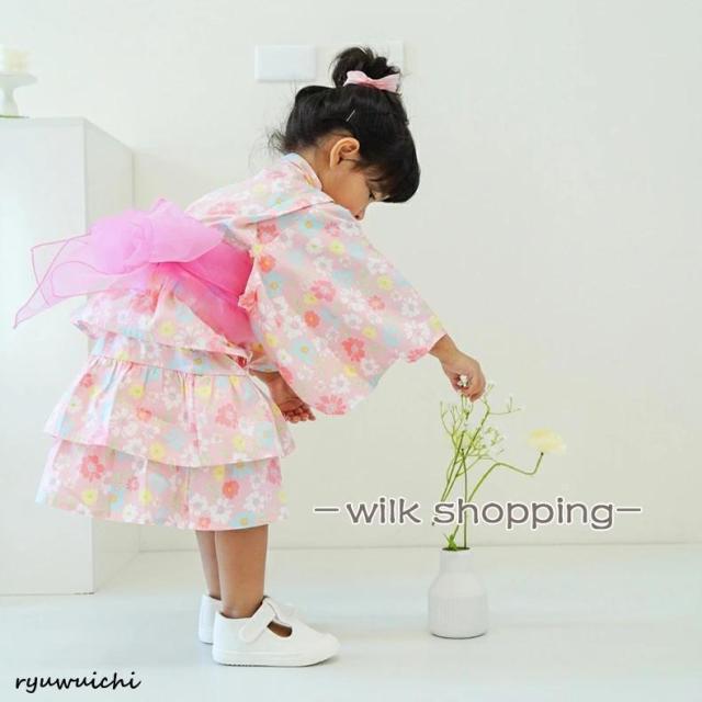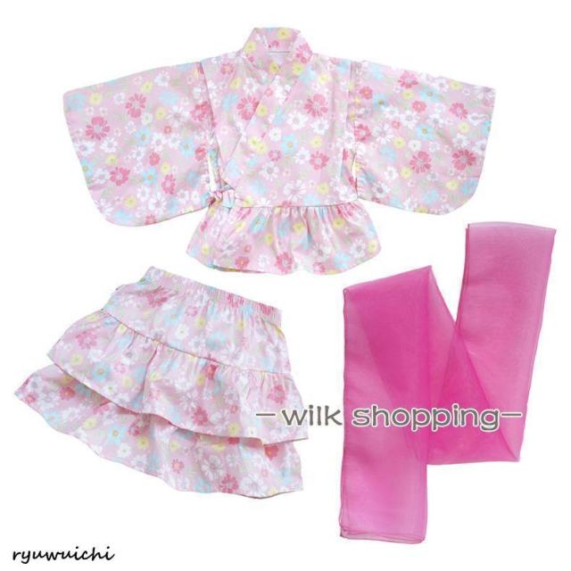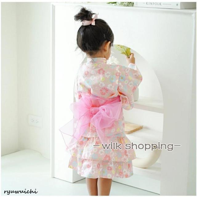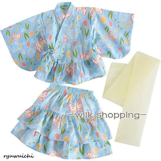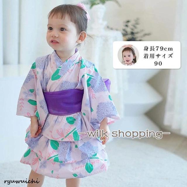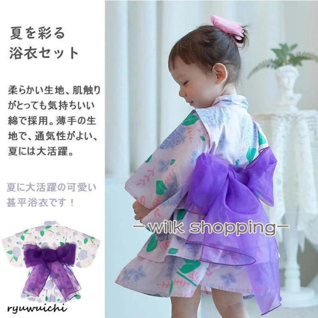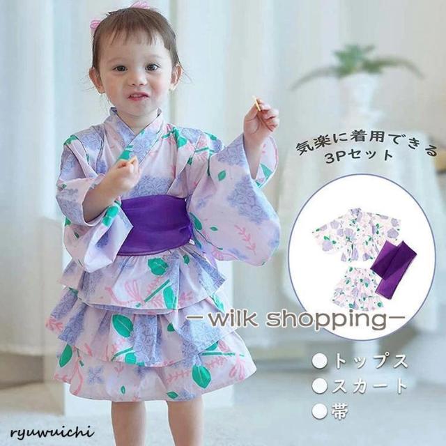 浴衣 セパレート 子供 浴衣 女の子 子ども 浴衣セット ベビー 浴衣ドレス 子ども ワンピース 夏 ゆかた 3点セット 帯セット 兵児帯付 甚平 90 100 110 120 130