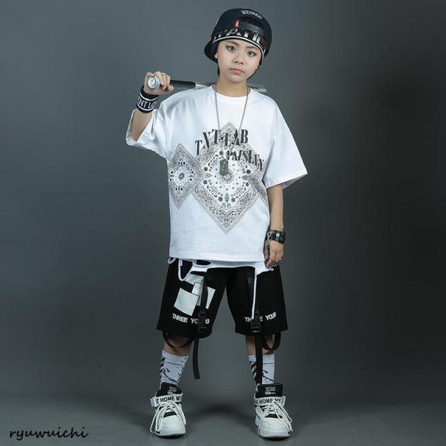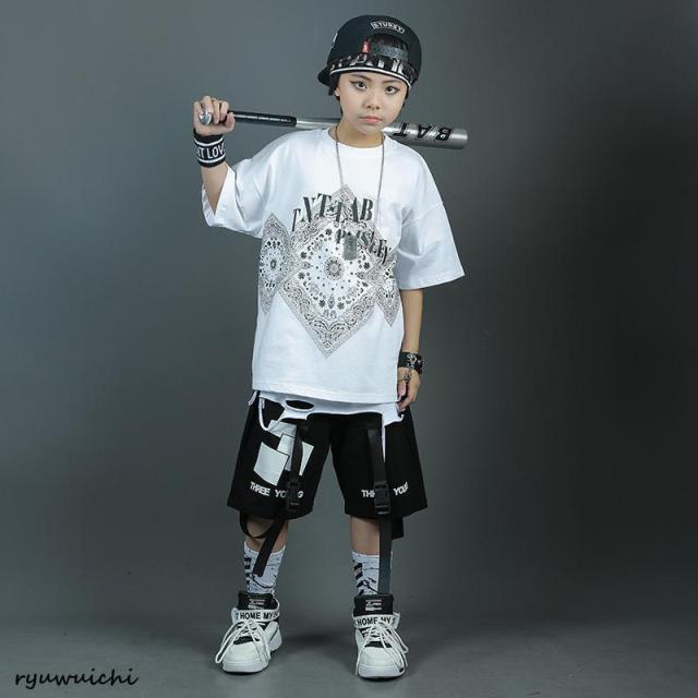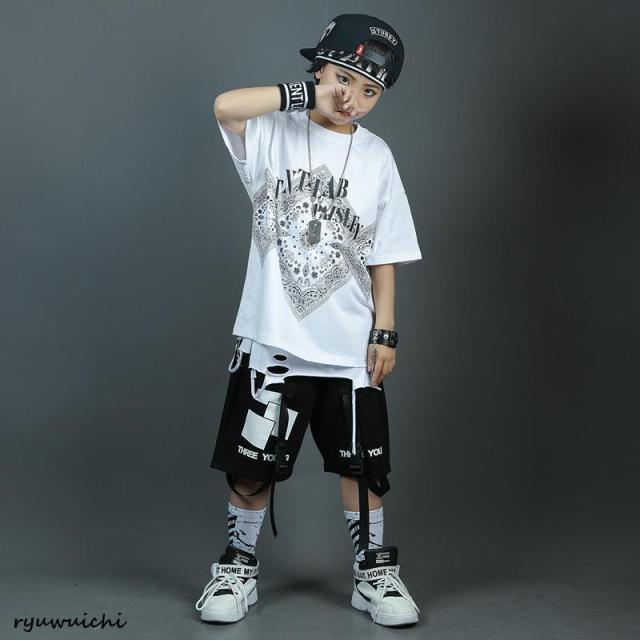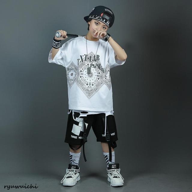 キッズダンス衣装 上下セット ヒップホップ 男の子 夏 半袖 スケートボード 子供服 ヒップホップ 派手 ストリート 原宿系 レッスン ダンスウェア ジャズ hiphop