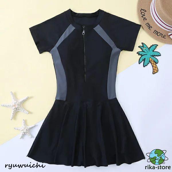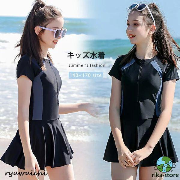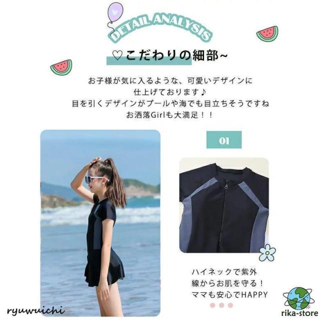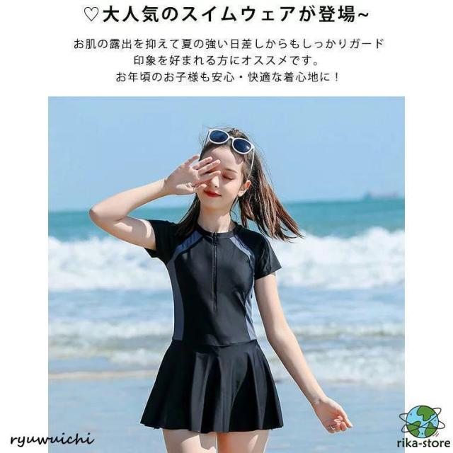 女の子 水着 キッズ水着 スクール水着 半袖 ジュニア セパレート 140 150 160 165 170 ワンピース ショートパンツ付き スカート 子供 水着 スイムウェア レデイ