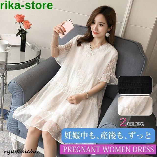 マタニティワンピース 夏 半袖 ワンピース マタニティウェア 妊婦服 授乳服 ロング丈 産前 産後