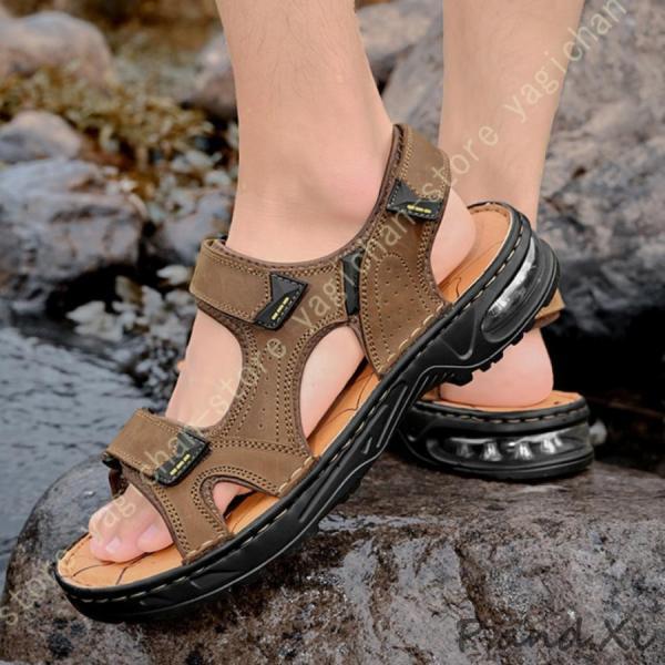 スポーツサンダル メンズ サンダル かかとあり 大きい 本革 アウトドアサンダル 登山 クッション ベルクロ 厚底 さんだる オシャレ 男性用 防臭 防滑 キャンプ