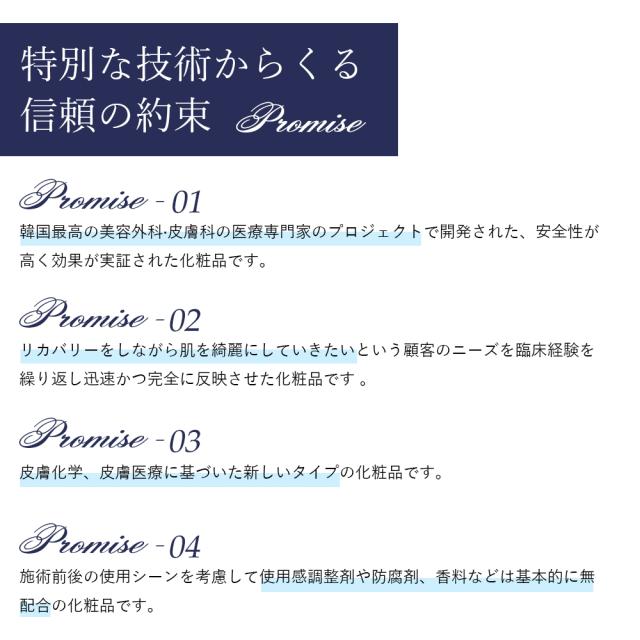 | 商品説明 | 韓国最高レベルの医療センターであるドリームメディカルグループ整形外科と皮膚科の分野で最も優秀で信頼できる医療専門家との共同プロジェクトで理想の肌を実現する科学的整形化粧品を長い研究開発を経て開発したブランドのドクタードリーム。 高い効能を持つ化粧品。医療専門家の処方に基づいて鎮静→抗炎症→リカバリー→再生を安全でかつ活性なオリジナル成分を配合し、蓄積されたノウハウによって開発された正真正銘の整形&皮膚科ブランドです。 差別化された技術で作られた約束 Promise-1 韓国最高の美容外科?皮膚科の医療専門家のプロジェクトで 開発された、安全性が高く効果が実証された化粧品です。 Promise-2 リカバリーをしながら肌を綺麗にしていきた いという顧客のニーズを臨床経験を繰り返し迅速かつ完全に反映させた 化粧品です。アルコールで消毒することは化粧品ではありません。 Promise-3 皮膚化学、皮膚医療に基づいた新しいタイプの化粧品です。 Promise-4 施術前後の使用シーンを考慮して使用感調整剤や防腐剤、 香料などは基本的に無配合の化粧品です。 |
