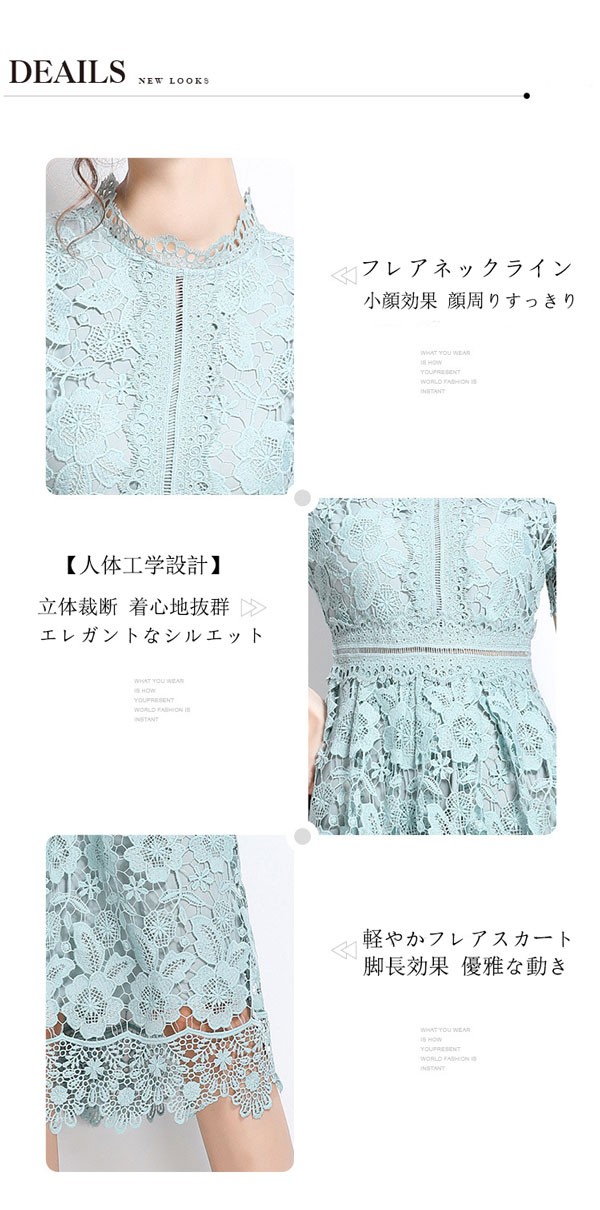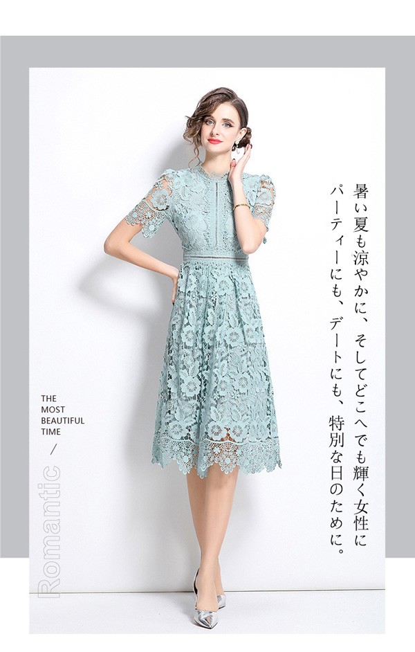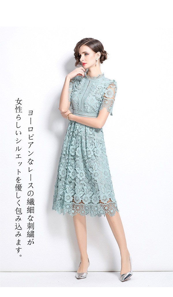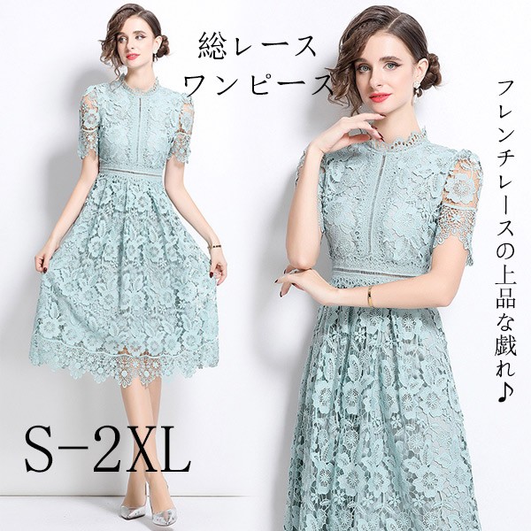 フレンチレース ワンピース レディース 夏 上品 レトロ エレガント 刺繍 透かし編み スリム ドレス レース 大人可愛い フォーマル通勤 デート パーティー 結婚式 卒業式 母の日 プレゼント ギフト