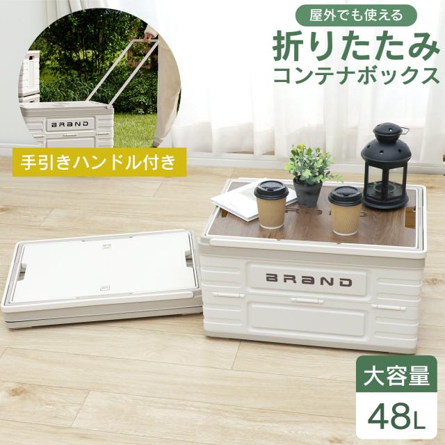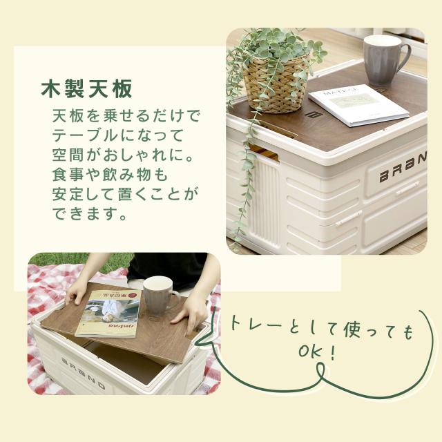 折りたたみコンテナ 木製天板 コンテナボックス 収納ボックス バスケット 持ち手付き 大容量 48L 折りコン おりたたみ レジャーボックス キャンプ アウトドア ピクニック ペットボトル ストック BOX キャリーカート 天板付き サイドテーブル キャスター付き