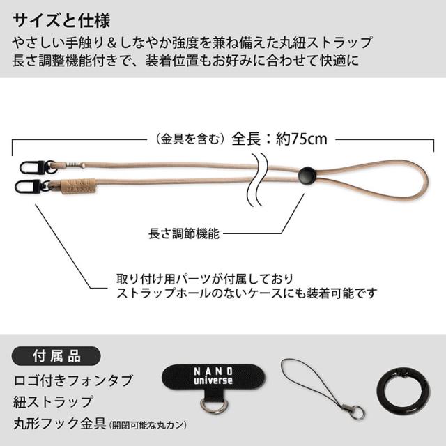 nano universe ナノ・ユニバース ショルダーストラップ フォンタブ 付き ストラップ ロングストラップ 75cm スマホケース バッグ 鞄 単品 ストラップ スマホ 落下防止 おしゃれ かっこいい かわいい ブランド ナノユニバース iphone ケース パスケース 社員証 肩掛け 首掛け