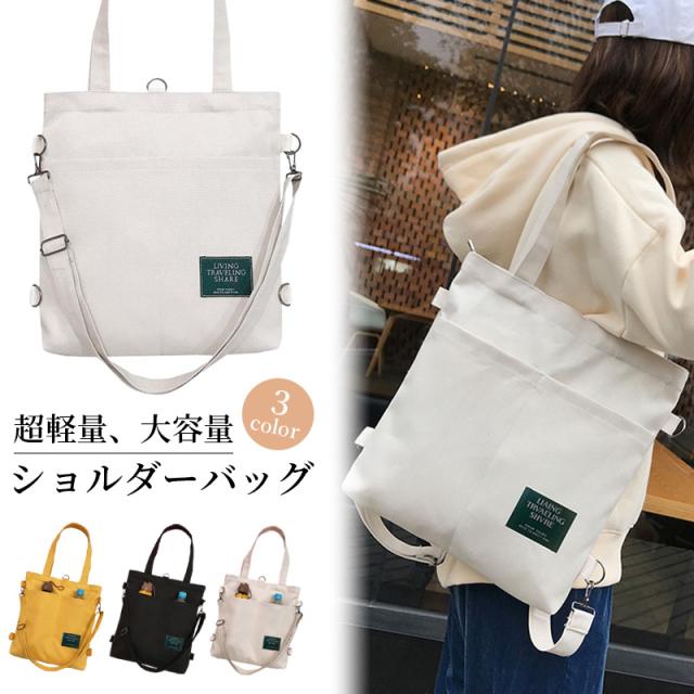 2way トートバッグ レディース 無地 シンプル ナイロン 大きめ ポケット多い ファスナー付き 軽量 しっかり メンズ バック 防水 お買い物バック 持ち運び