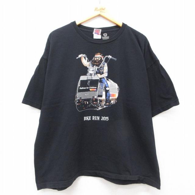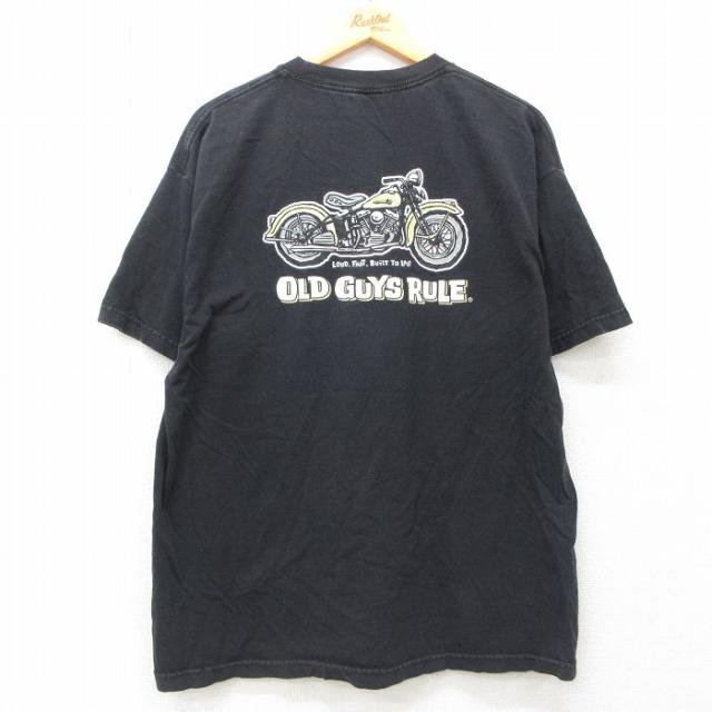 古着 半袖 Tシャツ メンズ バイク クルーネック 黒 ブラック XLサイズ 中古 中古 古着