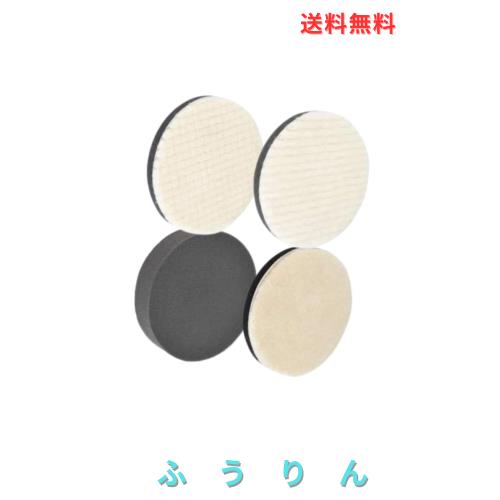 ポリッシャーバフ スポンジバフ 100mm 研磨スポンジ マジックテープ式 (3ウールバフ+1極細スポンジ, 100mm 4個セット)