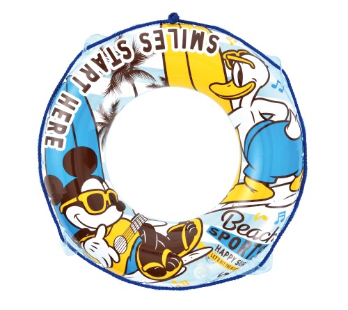 ●商品説明:レトロ感漂うミッキーとドナルドがプリントされたブルーカラーの浮き輪!安心のロープ付き。今年の夏は海水浴やプールで大活躍