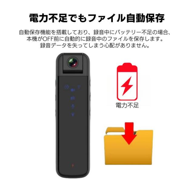 【自動保存機能】自動保存機能を搭載しており、録音中にバッテリー不足の場合、本機がOFF前に自動的に録音中のファイルを保存します。録音データを失ってしまう心配がありません