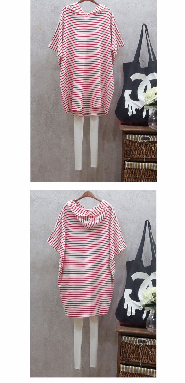 ワンピース Tシャツワンピ チュニック ボーダー フード付き ドルマン 半袖 ゆったり カジュアル