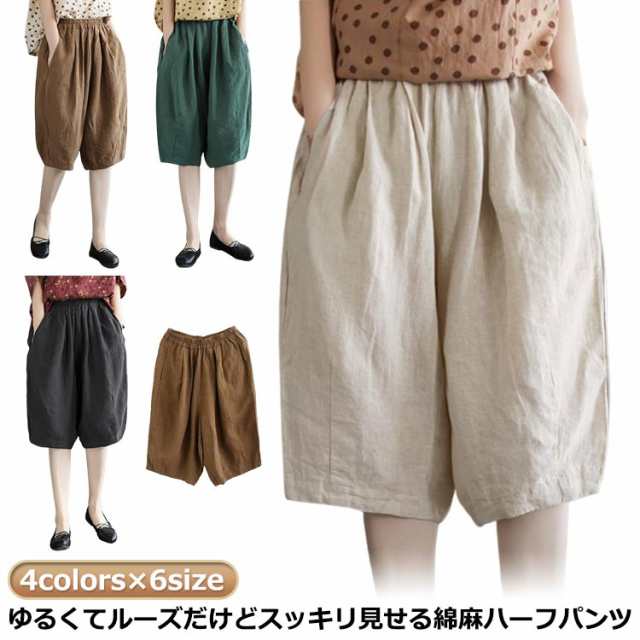 | 4colors×6size ゆるくてルーズだけどスッキリ見せる綿麻ハーフパンツ | |