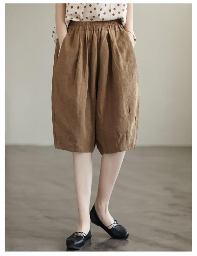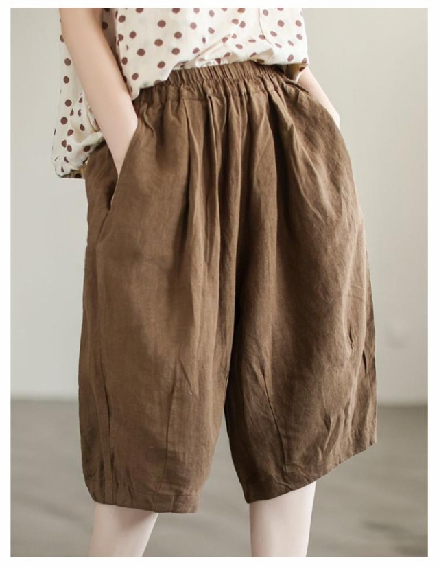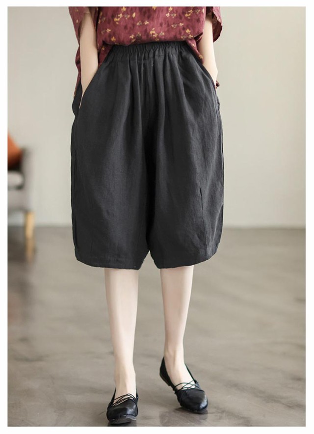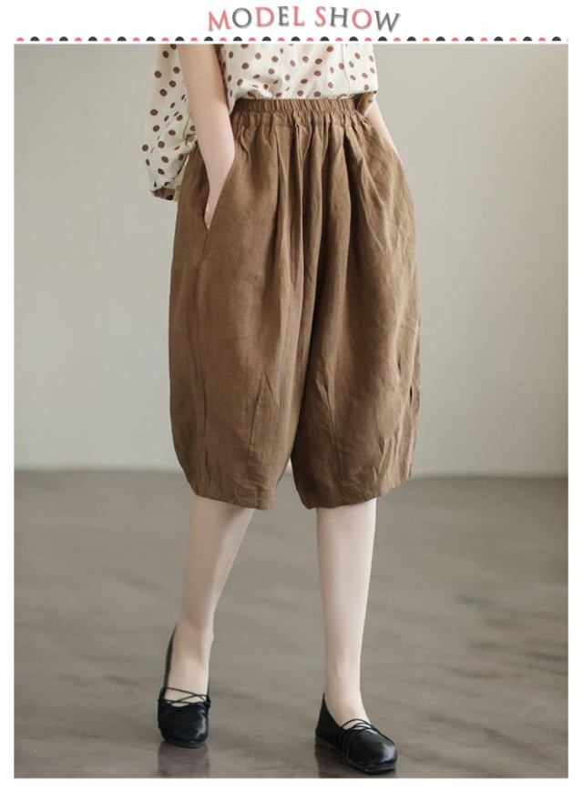 綿麻パンツ ハーフパンツ 膝丈 涼しい パンツ 薄手 ウエストゴム 短パン 5分丈 レディース ショートパンツ リネンパンツ キュロットパンツ 綿麻パンツ ガウチョパンツ レディース 五分丈パンツ 春 夏 ショートパンツ バルーン ワイドパンツ カジュアル