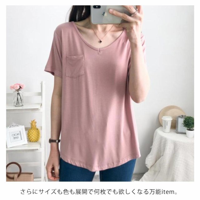 全5色×3サイズ!胸ポケット付きtシャツ tシャツ レディース ゆるT カットソー 半袖tシャツ 半袖カットソー モーダル vネックtシャツ 薄手 無地 vネック 大きサイズ 夏服 おしゃれ 可愛い 送料無料
