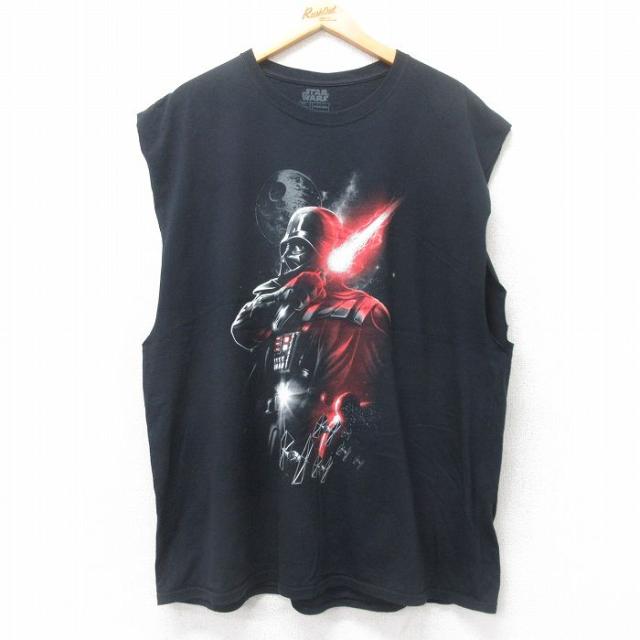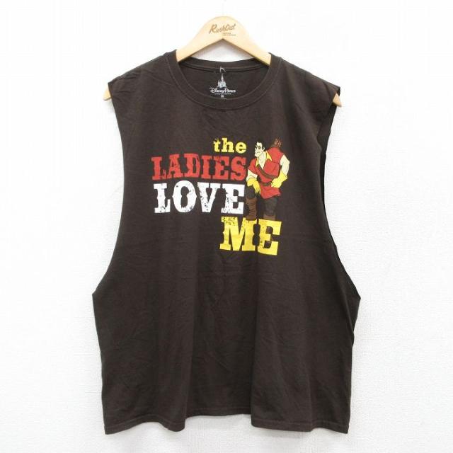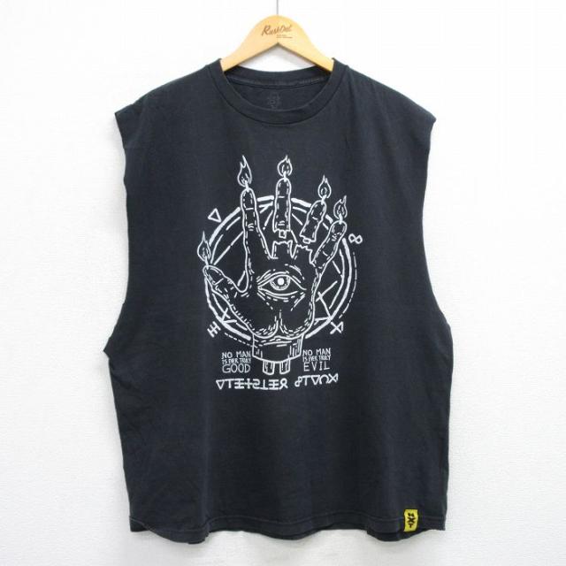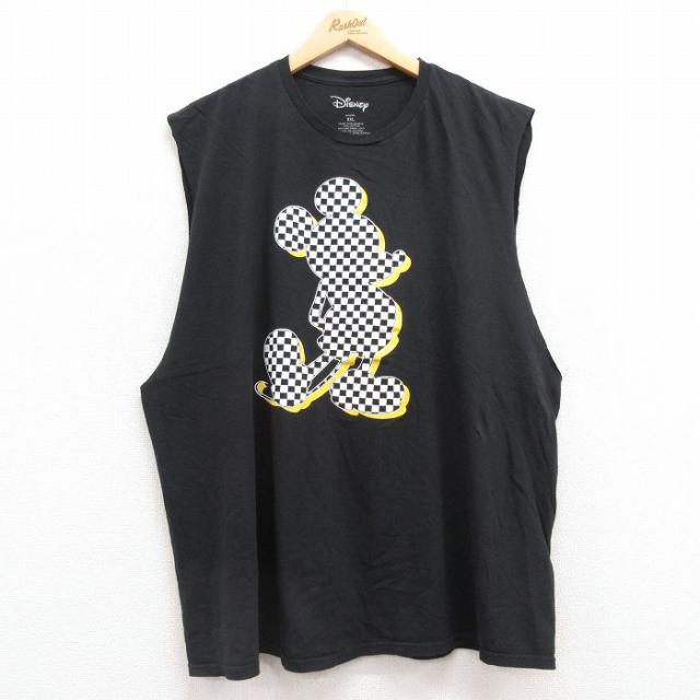 古着 ノースリーブ Tシャツ メンズ ディズニー DISNEY ミッキー MICKEY MOUSE 大きいサイズ コットン クルーネック 黒 ブラッ 中古 古着