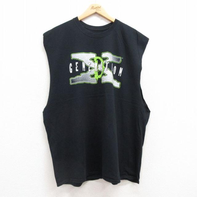 【商品名】 XL★古着 ノースリーブ Tシャツ メンズ ディズニー ミッキー 大きいサイズ コットン クルーネック 黒