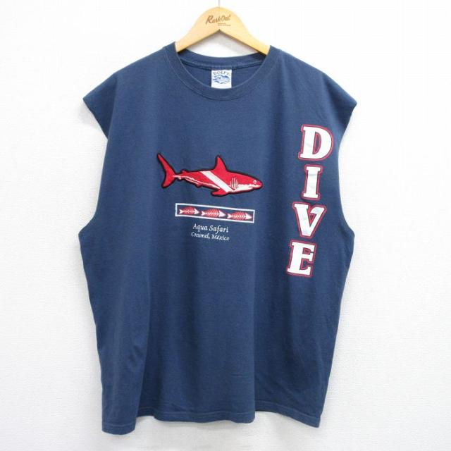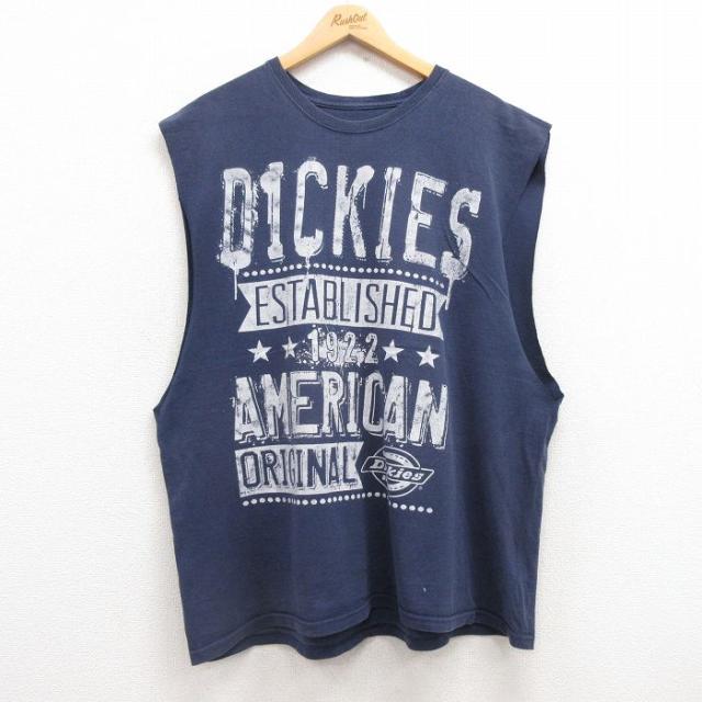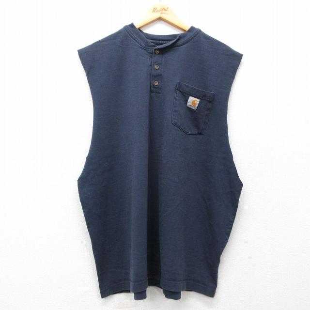 【商品名】 XL★古着 カーハート ノースリーブ Tシャツ メンズ ワンポイントロゴ 胸ポケット付き 大きいサイズ コットン ヘンリーネック 紺