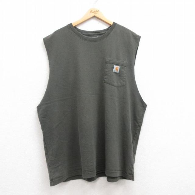 古着 カーハート Carhartt ノースリーブ Tシャツ メンズ ワンポイントロゴ 胸ポケット付き 大きいサイズ コットン ヘンリーネ 中古 古着