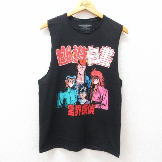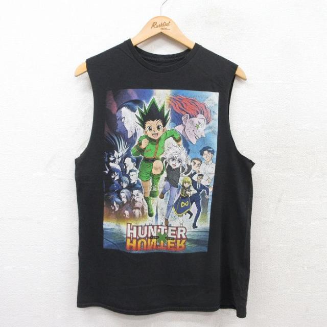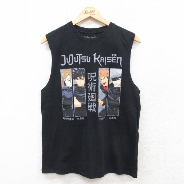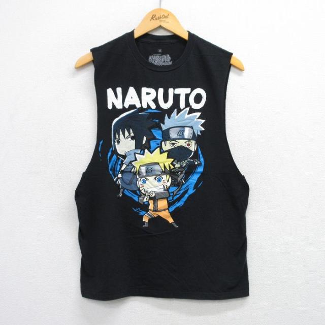 古着 ノースリーブ Tシャツ メンズ アニメ ナルト疾風伝 うずまきナルト はたけカカシ うちはサスケ コットン クルーネック 黒 中古 古着