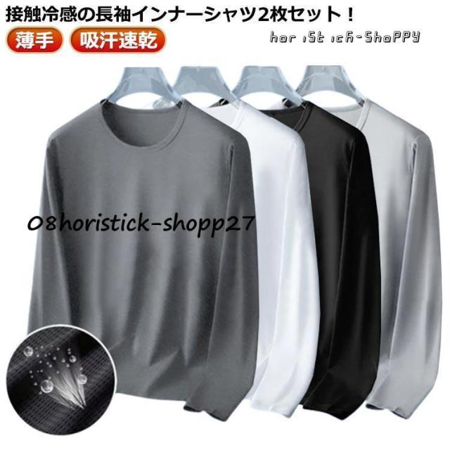夏 接触冷感 長袖 冷感インナー 2枚セット tシャツ 吸汗速乾 長袖tシャツ 2枚セット tシャツ ドライ メッシュ アイスシルク 紫外線対