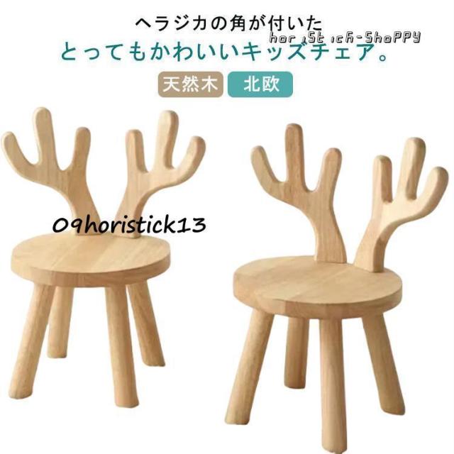 木製 キッズチェア ヘラジカ 角 耳付き 幼児 ローチェア 子供椅子 可愛い アニマルチェア 鹿 小さい 低い椅子 ミニ椅子 天然木 北欧 子供用チェ