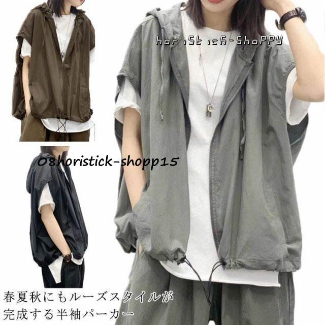 半袖 パーカー ベスト レディース メンズ フード付き 半袖パーカー カジュアル おしゃれ 前開き トップス 涼しい 春夏 ジップアップ ア