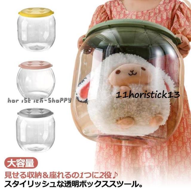 収納スツール 収納ボックス ぬいぐるみ 収納 大容量 透明 筒 収納ケース 円柱 ほこり防止 オットマン 椅子 ストレージチェア 足置き 踏み台 大容