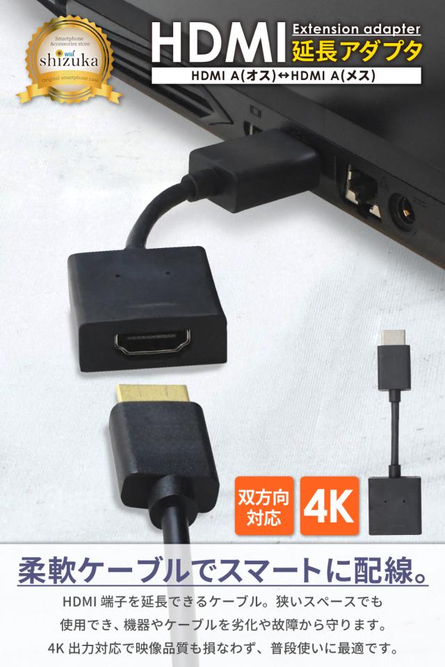 HDMI 延長アダプタ 90度 角度 オス メス 高速転送 4K高画質 延長コネクタ アダプター 延長 プラグ Windows MacBook パソコン ノートPC TV Stick スティック 軽量 テレビ 接続 モニター ミラーリング