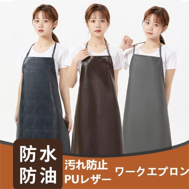 耐水性・耐油性のPUレザー素材のエプロン。食品の汚れや油分から守り、お手入れも簡単です。軽量、撥水効果も高く、どこでも使えるシンプルなデザインのエプロンです。