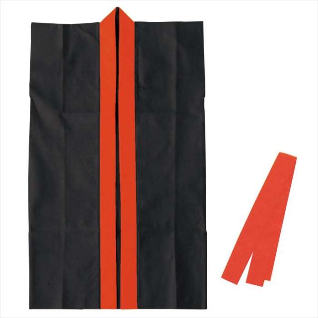 ■商品名:カラー不織布 ロングハッピ ハチマキ付 黒 赤襟 Mサイズ 運動会 体育祭 はっぴ 中学生〜高校生向け