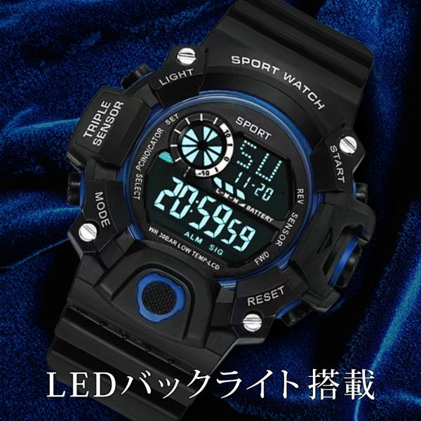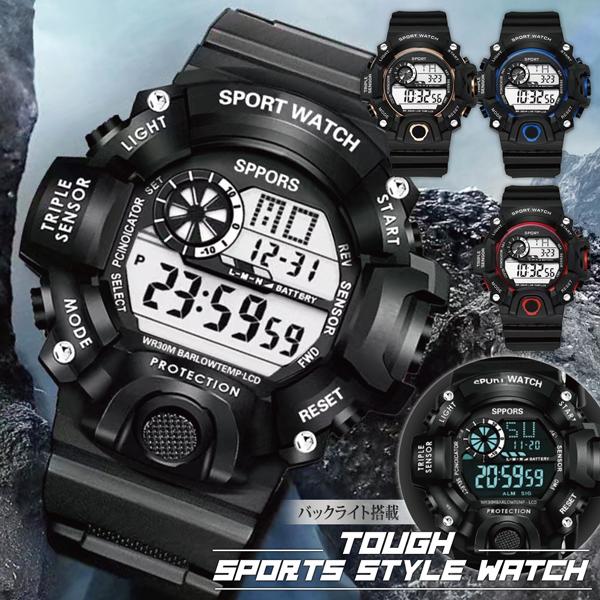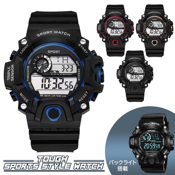 腕時計 メンズ 防滴 ストップウォッチ 日付/曜日 アラーム LEDバックライト 軽量 多機能 デジタルウォッチ ついで買い特集【 スポーツ 時計 ウォッチ 運動 】 ◎ /60N◇ タフ腕時計IX